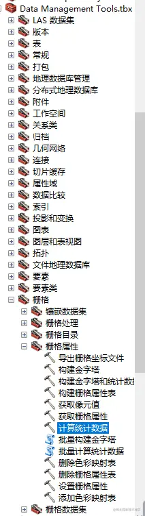 (1) 导入后的图像自身不具有统计信息,无法在“已分类”模块中对其各个数值划分区间。因此,需要首先使用工具对其数据信息加以统计。点击“Data Management Tools.tbx”→“栅格”→“栅格属性”→“计算统计数据”。