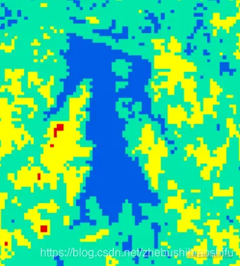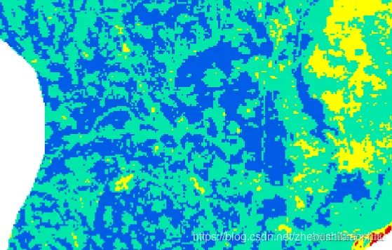 考虑到在计算植被覆盖度时使用的公式中已包含“B1”这个变量波段名称,为了避免不同公式之间的变量相互混淆,因此在一开始我在每一个公式中都使用了不同的变量名称——如在此处地表比辐射率计算公式中使用“B2”“B3”等。但通过后期的实验过程发现,其实每一次公式的变量名称即使一致也不会对实验造成明显的影响。