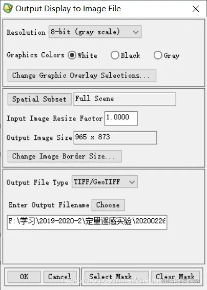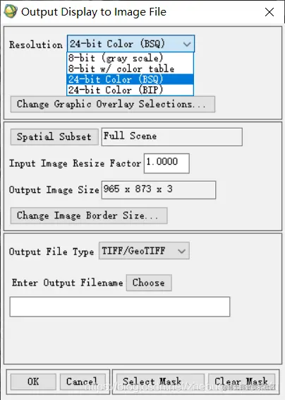 (1) 首先,我在ENVI图像窗口中进行图像的另存为操作。选择“File”→“Save Image As”→“Image File”,在弹出的保存配置窗口中选择文件格式为“TIFF/GeoTIFF”,并配置好结果图像文件保存路径、保存文件名等。