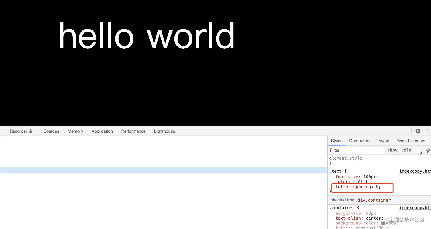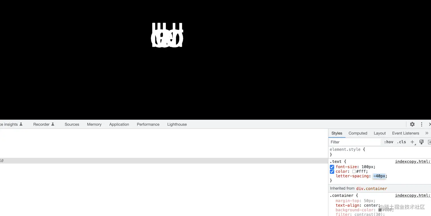 以上是基础代码结构,通过调整letter-spacing的值,我们可以控制他的展开与收起。值越小为负数时文字就可以挤在一起,越大文字间距就越大。