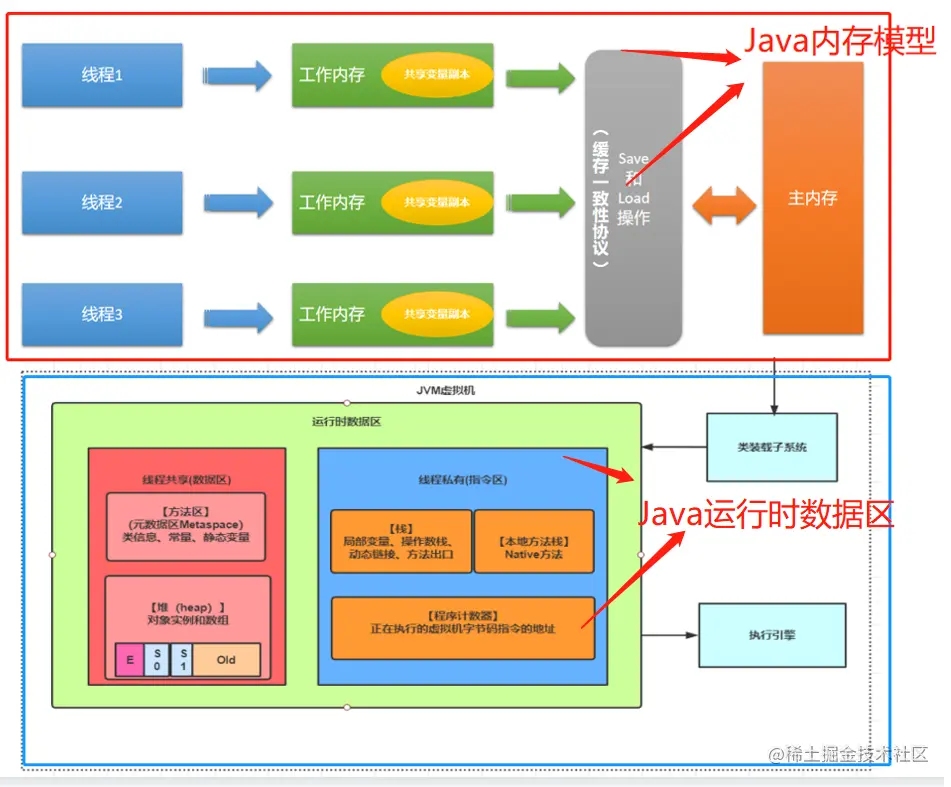 Java内存模型和Java运行时数据区是两个不同的概念,很容易让人混淆。下面简单介绍一下它们的区别:
