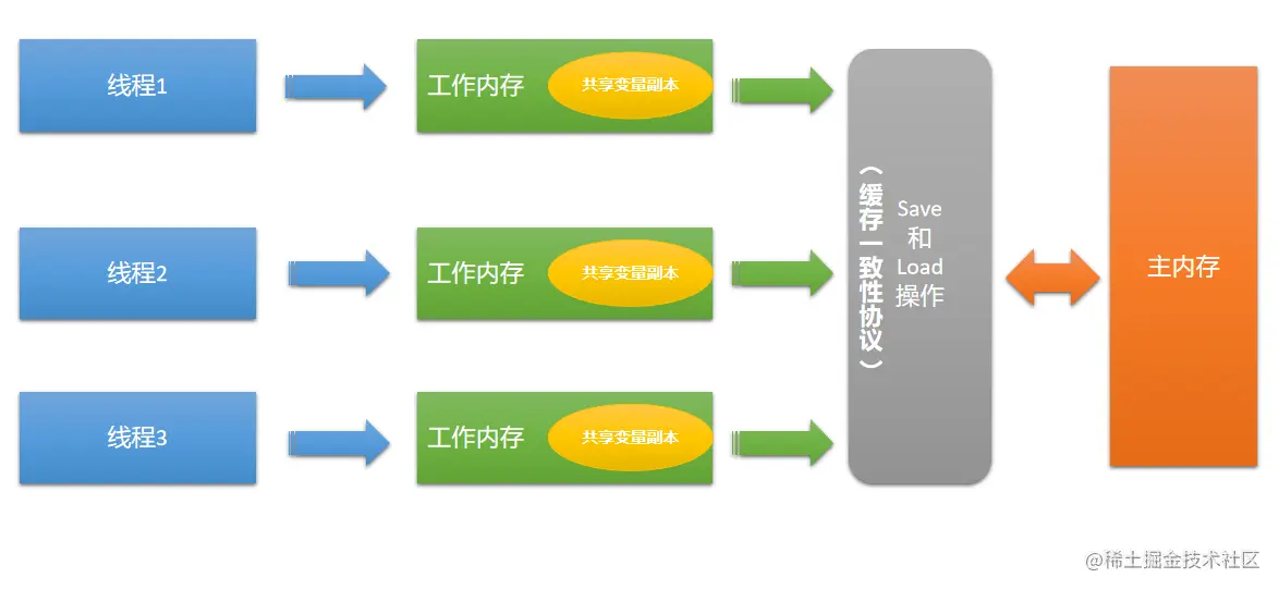 当一个线程需要使用某个共享变量时,它会首先从主内存中读取该变量的值到自己的工作内存中,并对它进行操作。操作完成后,该线程再将变量的值写回主内存中。在这个过程中,其他线程并不能直接访问到该线程的工作内存。