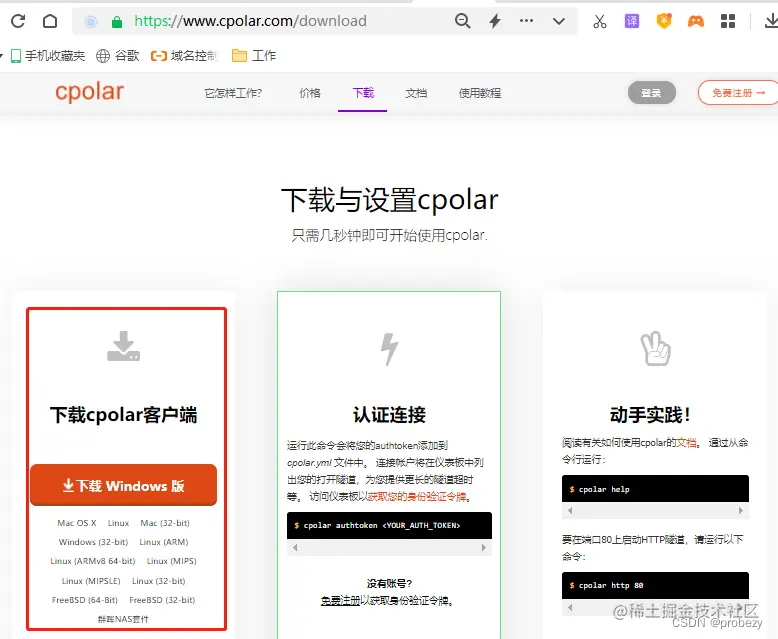 为能更好的说明cpolar的使用方式,我们以固定二级子域名隧道为演示。首先我们需要登录cpolar官网(官网地址为www.cpolar.com),下载好cpolar客户端(暂时不用安装,可以先设置好固定二级子域名空白隧道)