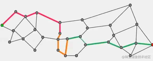 一旦我们意识到最优路线,我们就会通过考虑交通流量来找到穿越路段的估计时间,交通流量是时间、天气和现实生活事件的函数。我们使用这些交通信息来填充图上的边权重,如下图所示。