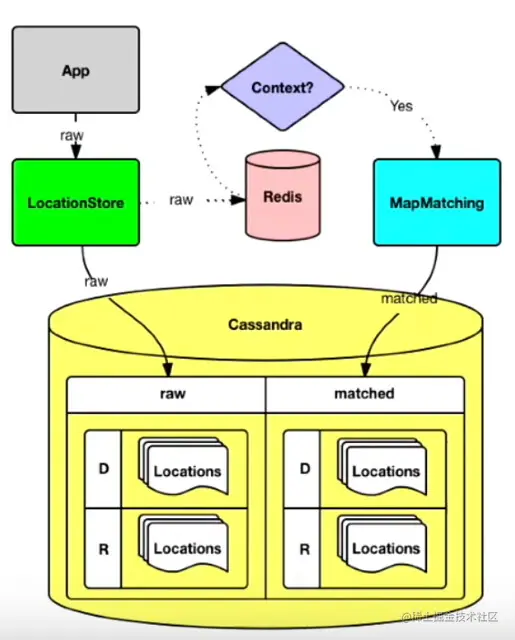 所提出的设计有一个问题,就是繁重的读和写都是指向数据存储的。我们可以通过在分布式缓存 (Redis) 中缓存原始驱动程序位置,从而将读流量与写分离,从而优化系统。MapMatcher 利用 Redis 缓存中的原始驱动位置来创建匹配的 map,并将其持久化到数据存储中。