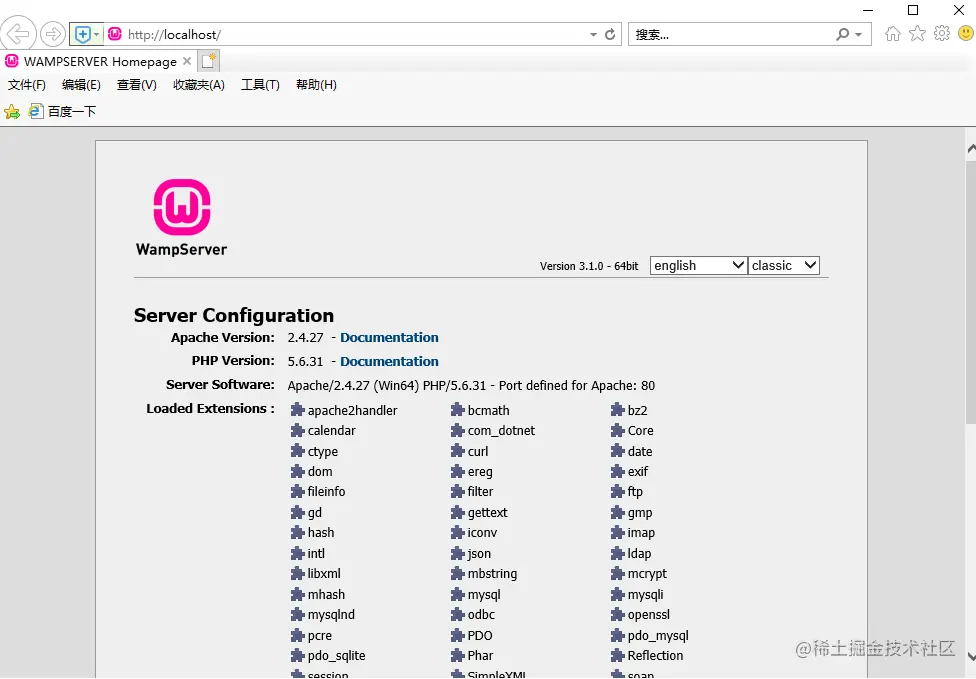 只要显示出如下页面,就说明wamp在本地电脑上安装成功。
