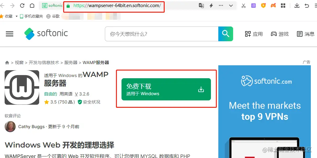 Wamp作为比较知名的软件,我们既可以在其官网(wampserver-64bit.en.softonic.com/)上找到下载,也可以在360软件管家或搜索引擎中搜索下载。
