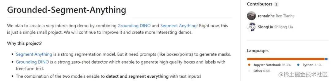 这个三合一模型项目名叫 Grounded Segment Anything,三种类型的模型既可以分开使用,也可以组合使用。