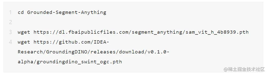 下载 segment-anything 和 ground- dino 的检查点: