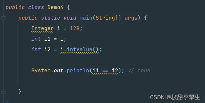 System.out.println(i1 == i2); // true