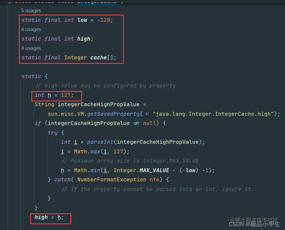 我们可以了解到这种方式装箱通过 valueOf的方式进行创建一个 Integer 对象,并使用了一个 IntegerCache 整形缓存来进行了一次比较,这个是什么呢?