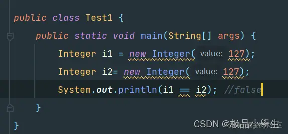 System.out.println(i1 == i); // false