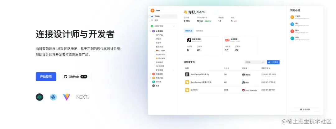 Semi Design 是现代、全面、灵活的设计系统和 UI 库,由字节跳动抖音前端与 UED 团队设计、开发并维护,是一款包含设计语言、React 组件、主题等开箱即用的中后台解决方案,可用于快速搭建美观的 React 应用。
