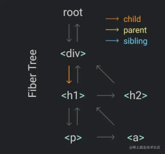 通过 parent child sibling 形成链表, 可以找到 下一个工作节点 nextUnitOfWork