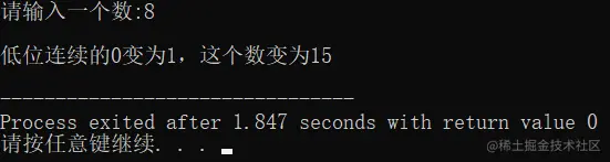 printf("\n低位连续的0变为1,这个数变为%d\n", x | (x-1) );