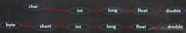 (byte, short)和char之间不会相互自动转换。byte,short,char他们三者可以计算,在计算时首先转换为int类型。