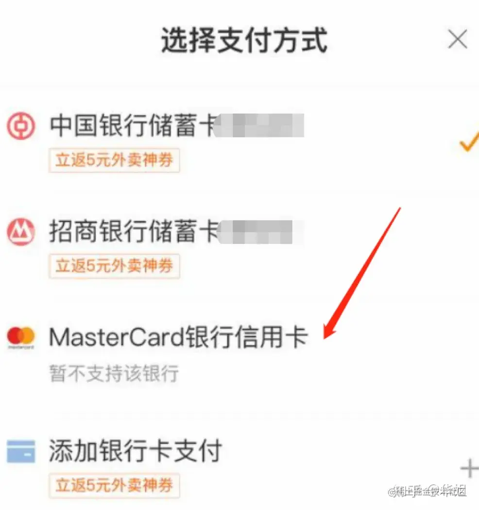 3、美团,适合点外卖,随便点;如果提示暂不支持该银行,直接选择,进行下一步输入过期日期和CVV,就支持了。