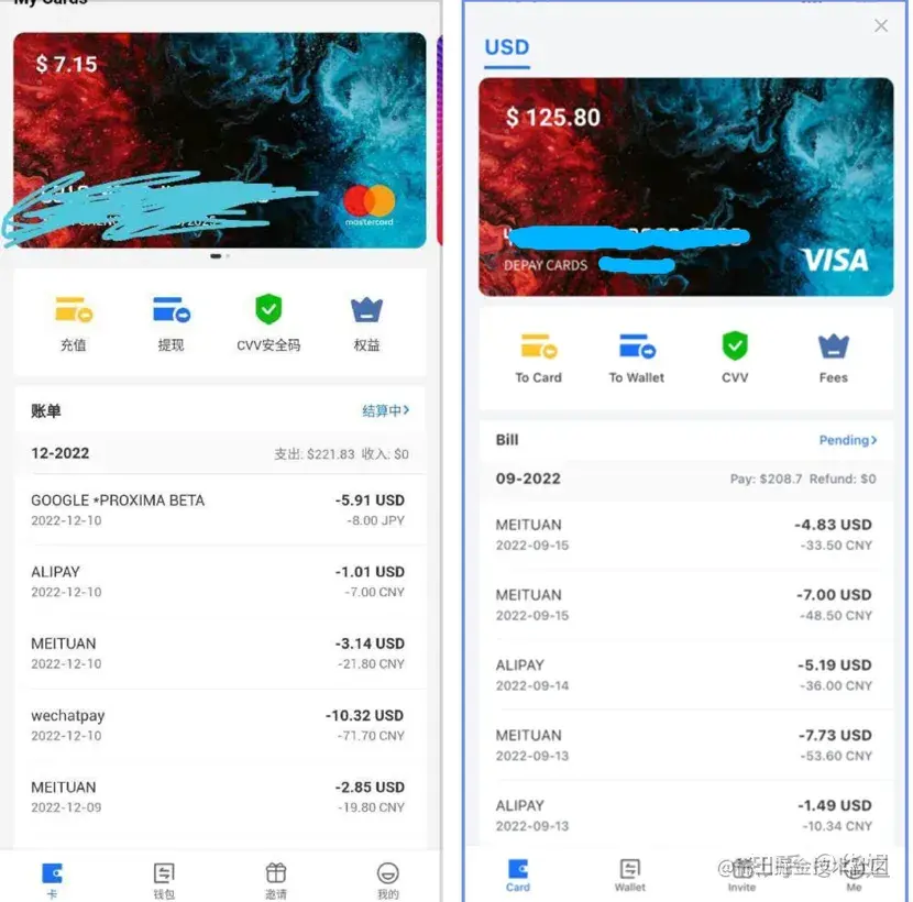 1、Depay Master Visa卡支持绑定支付宝、微信支付、美团外卖、拼多多、Paypal(国区、美区、港区)、天猫国际版等。