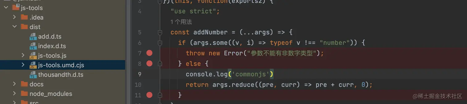 可以看出,当使用commonjs规范引入时,的确是进入了js-tools.umd.cjs 验证了配置入口是正确的