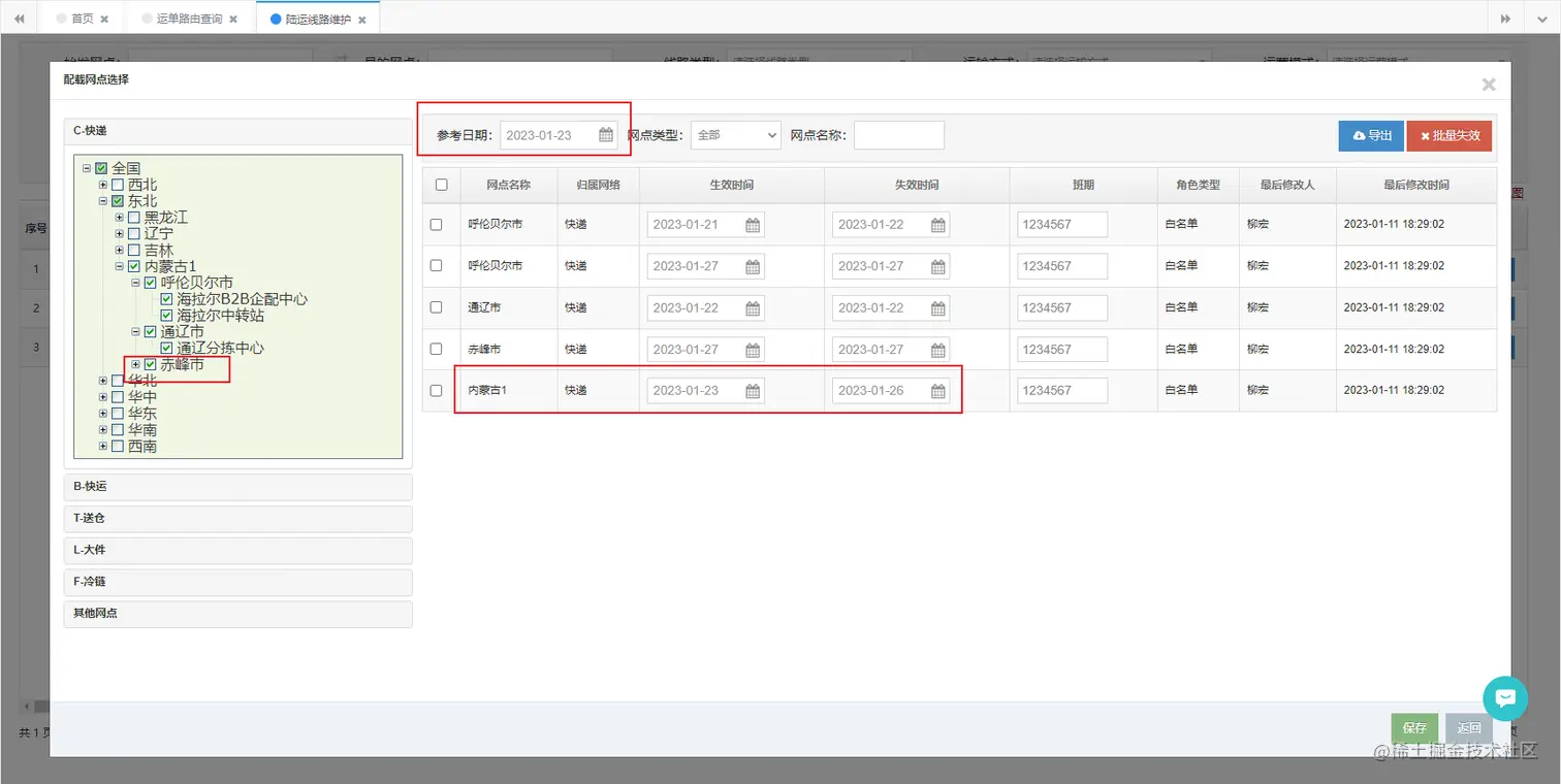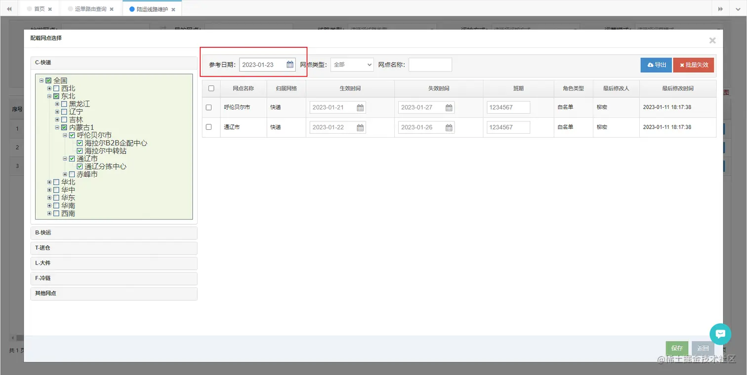 - 新添加节点,生效日期 为 参考日期,失效日期 为 线路失效日期