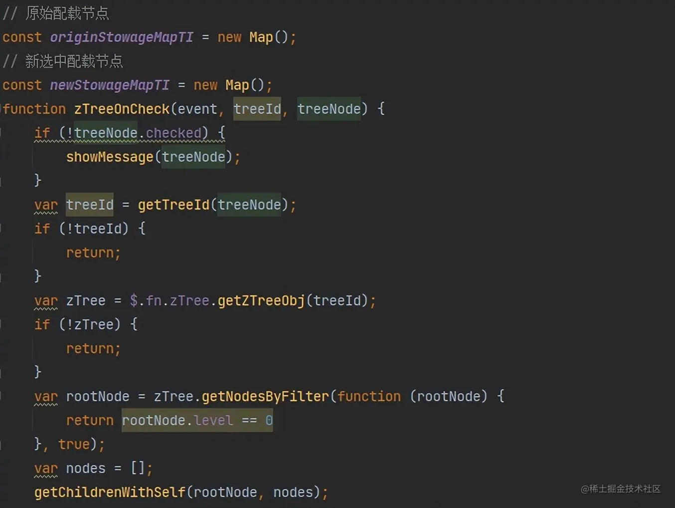 在配载树上监听事件,当触发选中/取消选中时,递归的获取childrenNodes