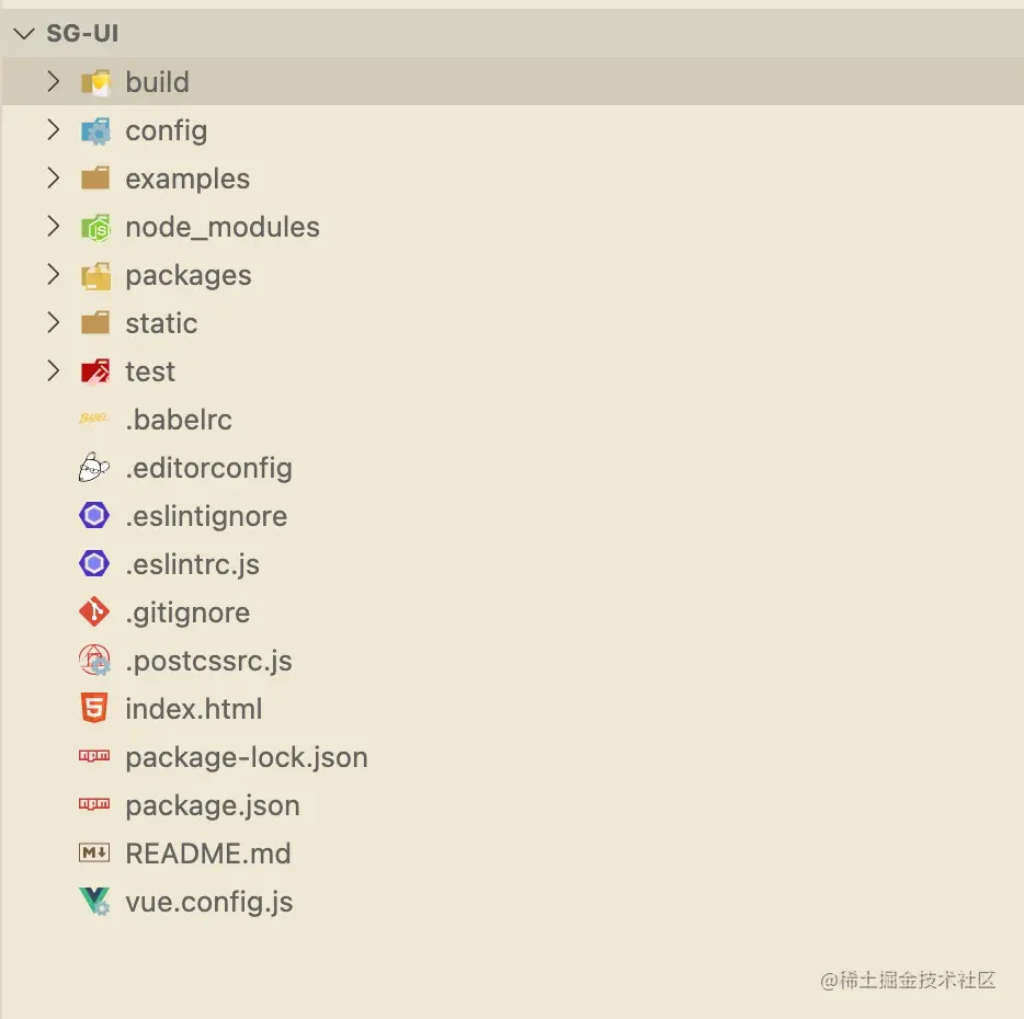 我们需要对现有目录做一些调整,首先我们接触过一些主流的ui组件库比如 vant/ant,我们知道在这些组件库的官网上都提供了很直观的示例页面,此时我们的组件库将src目录改名为examples,作为我们的官方示例目录。