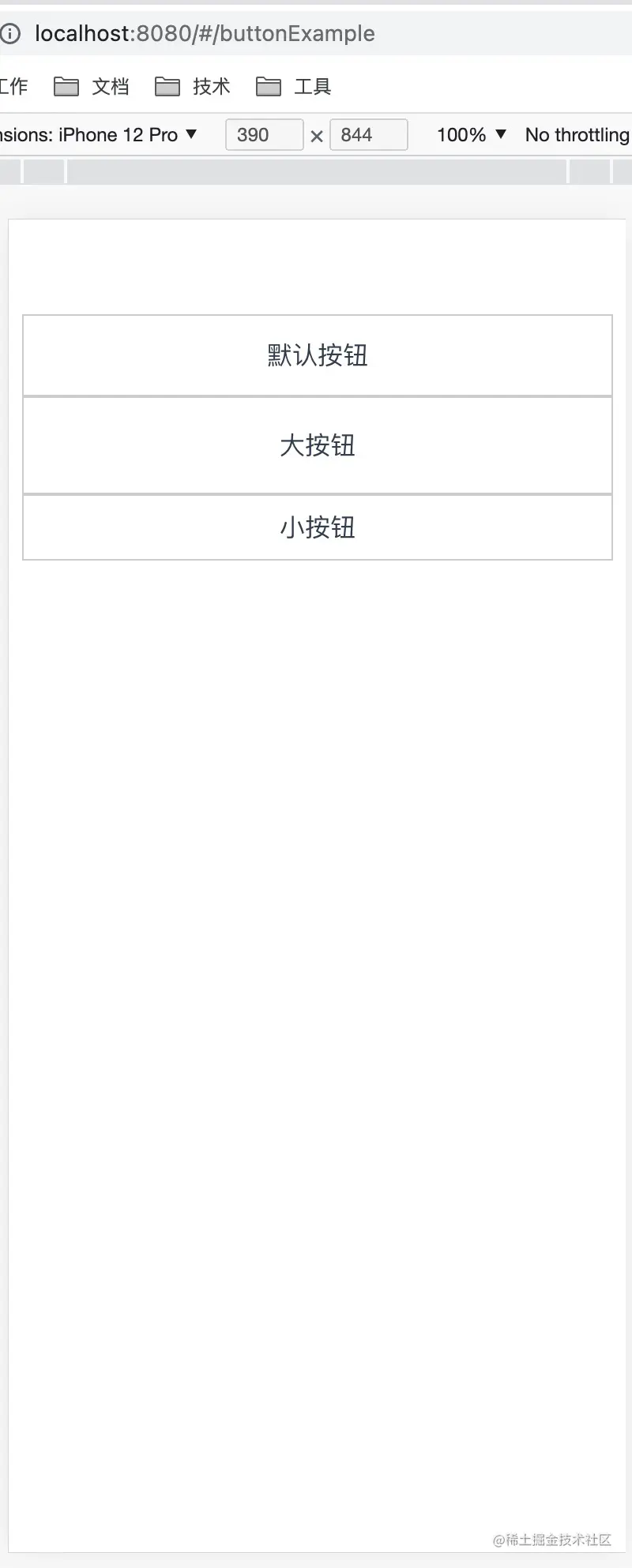 在这里我们直接调用了三种尺寸的button,运行看下效果: