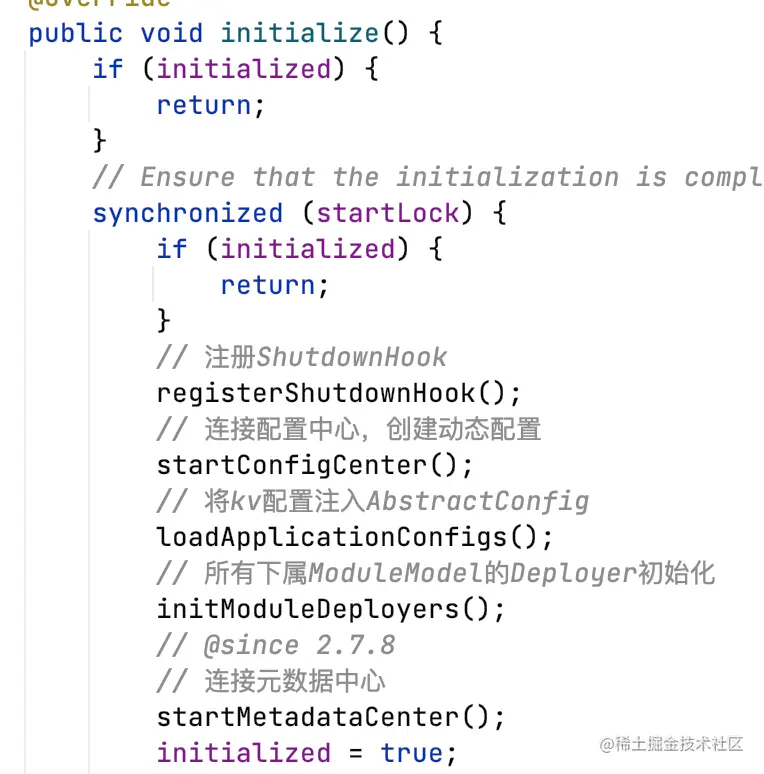 1)DefaultApplicationDeployer#initialize:应用Deployer自己初始化