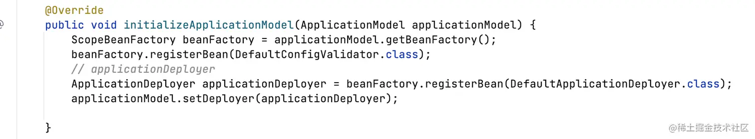 在ApplicationModel构造期间,创建DefaultApplicationDeployer与当前ApplicationModel绑定。