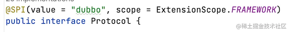 ExtensionScope列举了目前支持的四种scope:FRAMEWORK-dubbo框架级别、APPLICATION-应用级别、MODULE-模块级别、SELF-prototype原型;