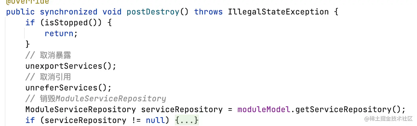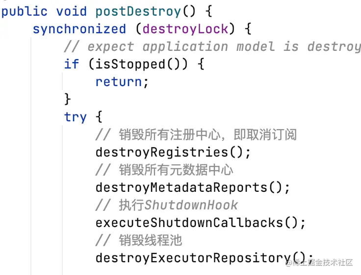 DefaultApplicationDeployer#postDestroy:当所有Module销毁后执行