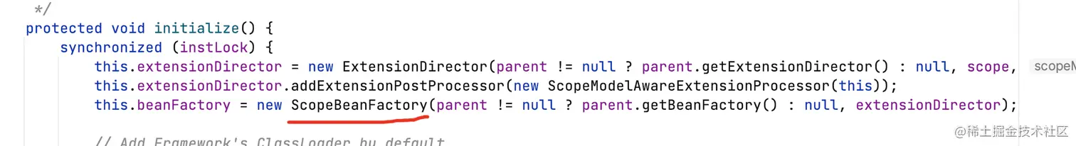 ScopeModel#initialize:每个ScopeModel都持有一个ScopeBeanFactory。