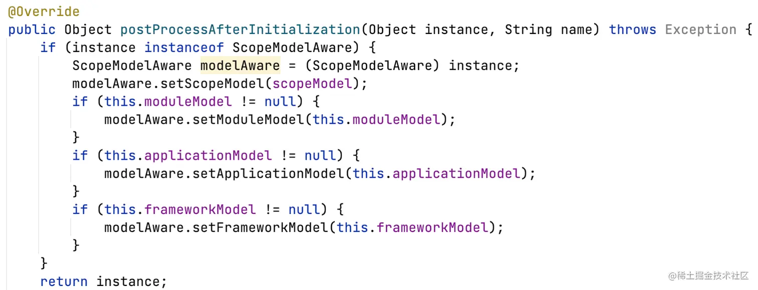 ScopeModelAwareExtensionProcessor#postProcessAfterInitialization: