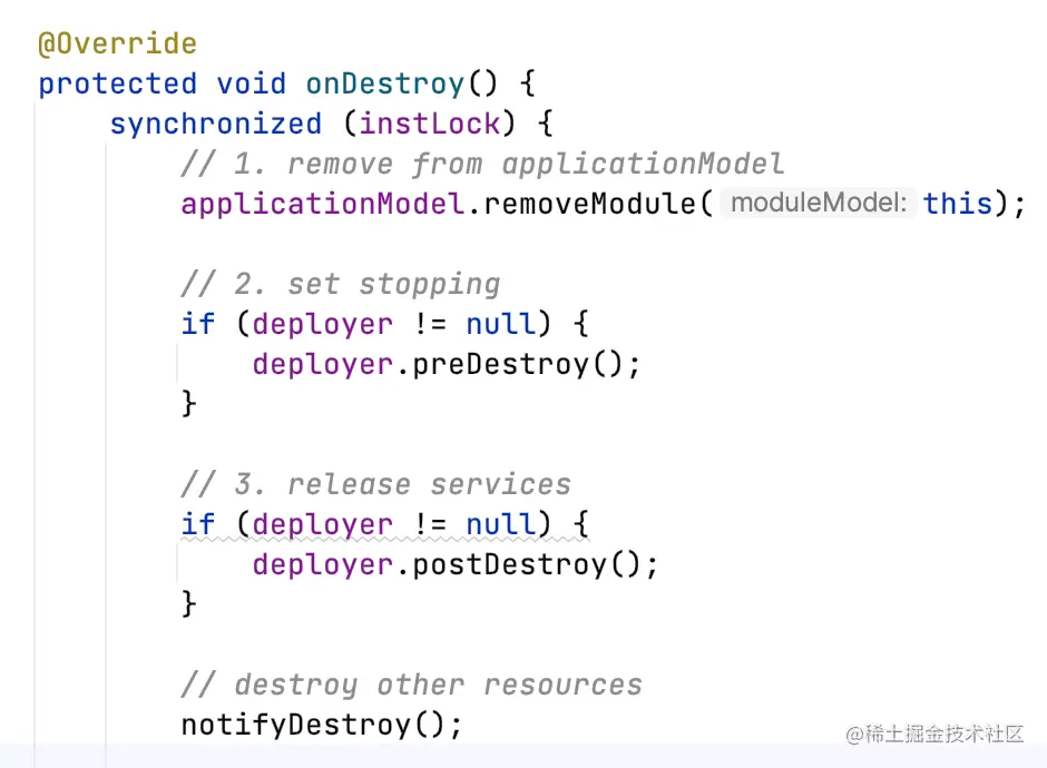 同样,模块Deployer可以由上层ApplicationModel销毁触发,也可以手动触发。
