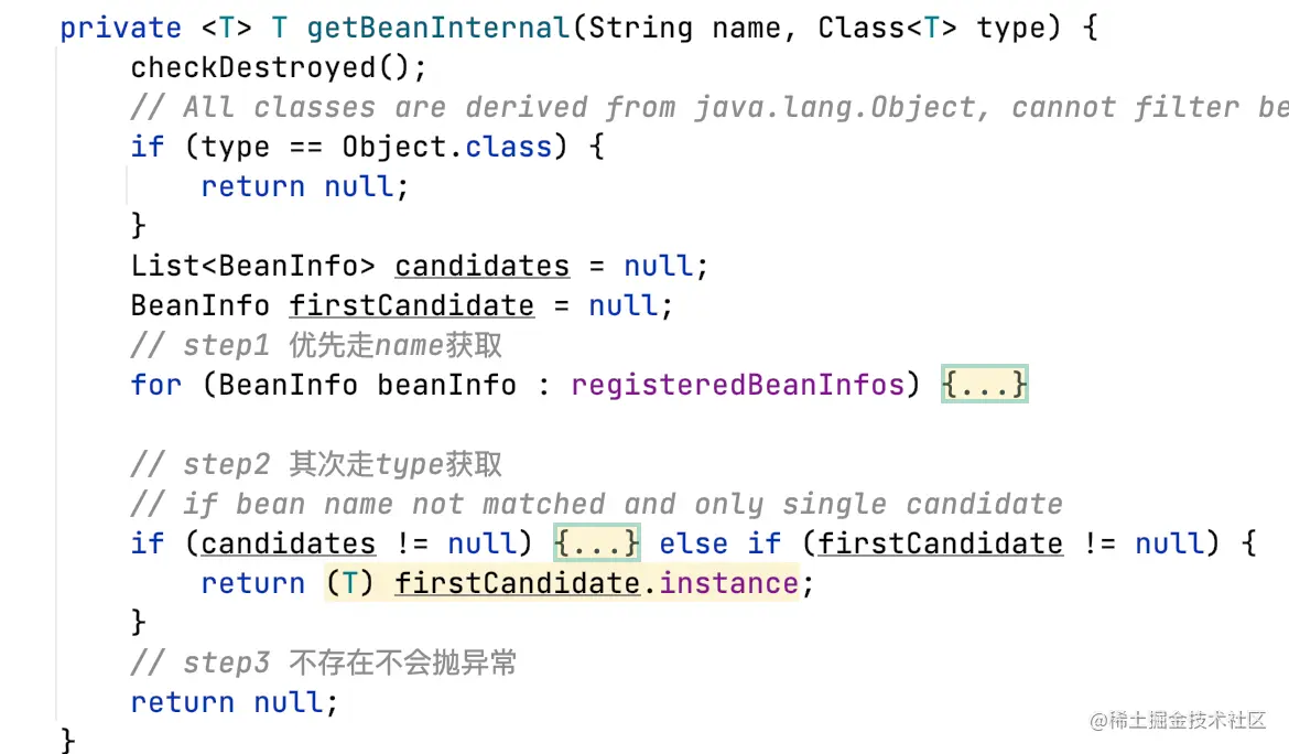 底层优先name匹配,其次type匹配(匹配多个抛出异常),如果都匹配不到返回null。
