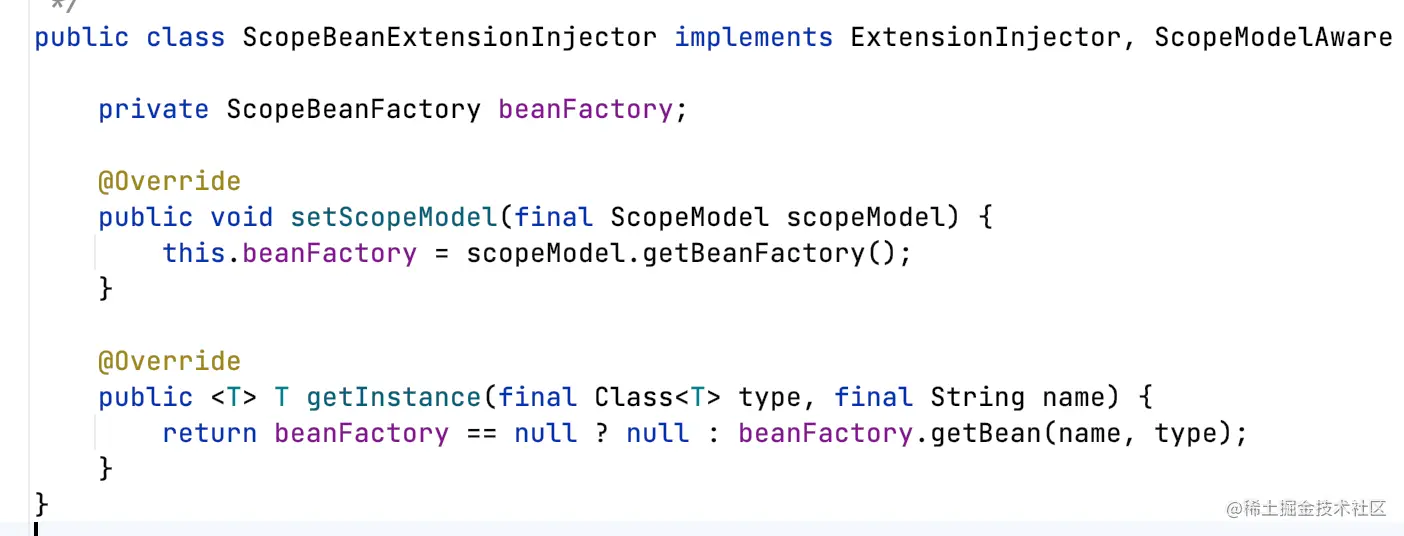 为了方便获取ScopeModel,ExtensionLoader支持构造注入、Aware注入ScopeModel。
