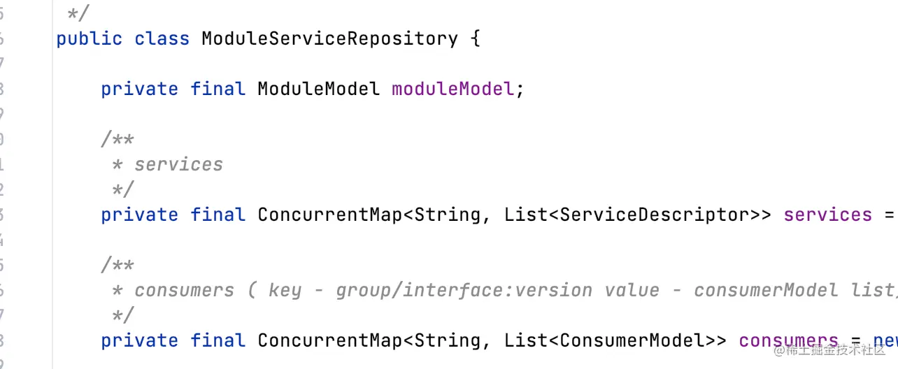 而在3.0,ModuleServiceRepository存储模块级别下的ConsumerModel,从根本上避免了类似问题。