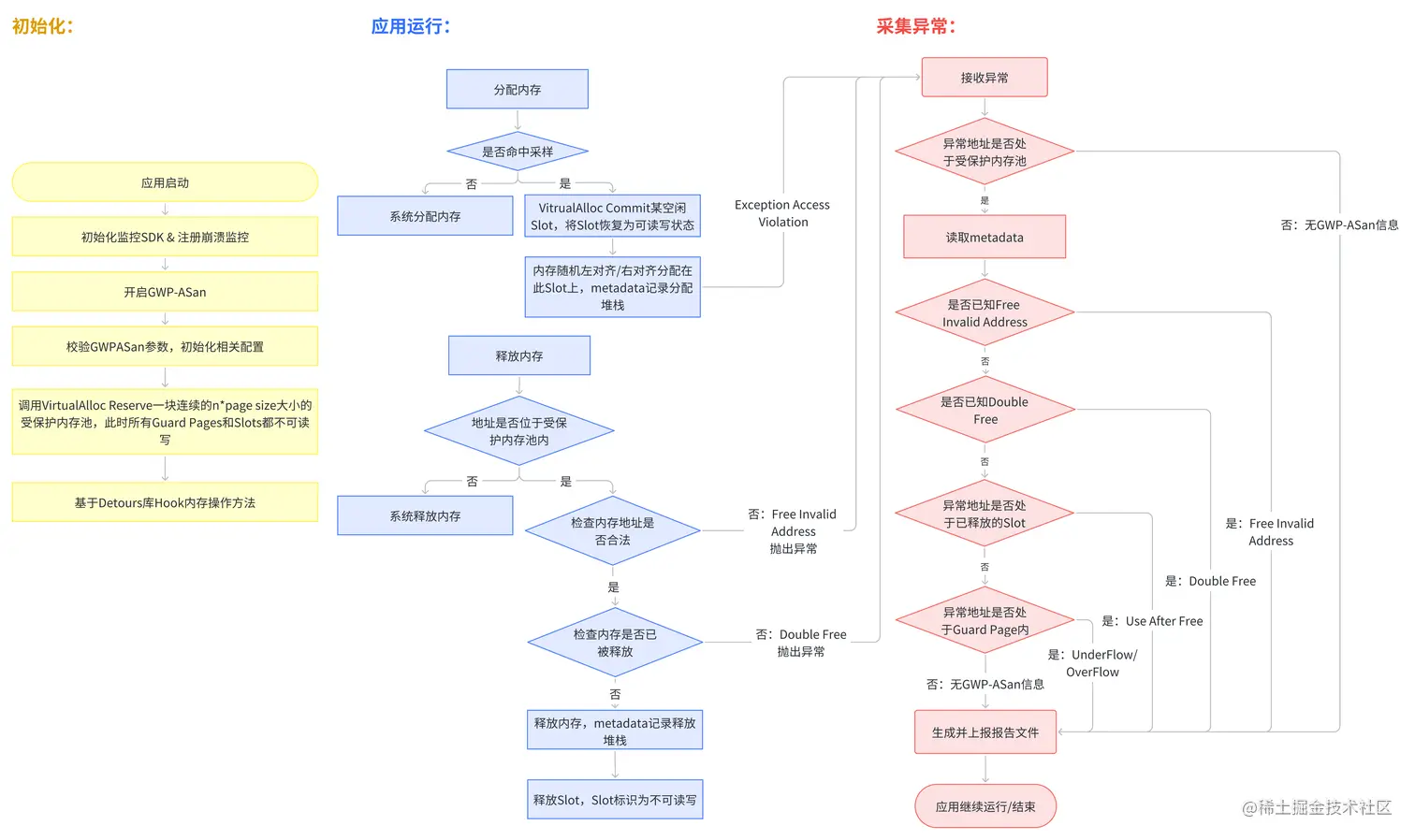 GWP-ASan有多种实现方案,本方案基于Windows平台说明,字节内部APM-PC平台相较于市面上其他方案的亮点有: