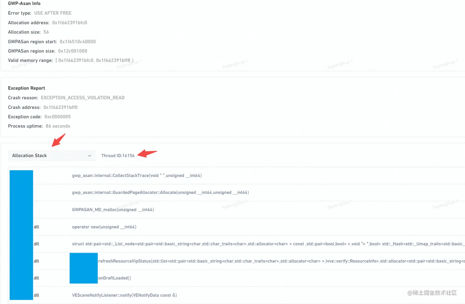 下图是GWP-ASan捕获的dump,windbg解析输出的内容: