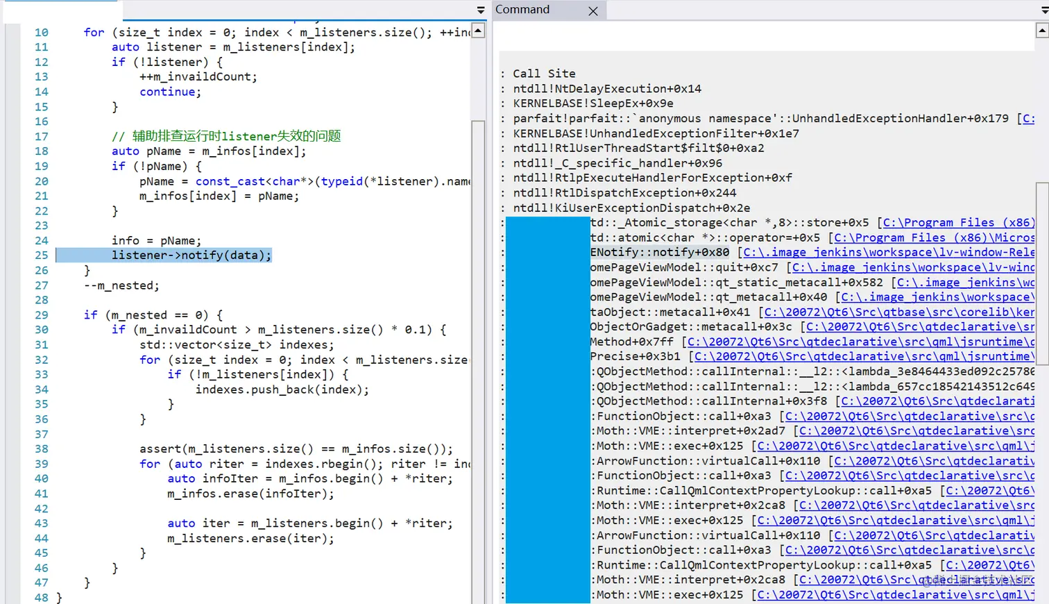 我们看下常规的dump输出,windbg告知我们程序crash在25行。