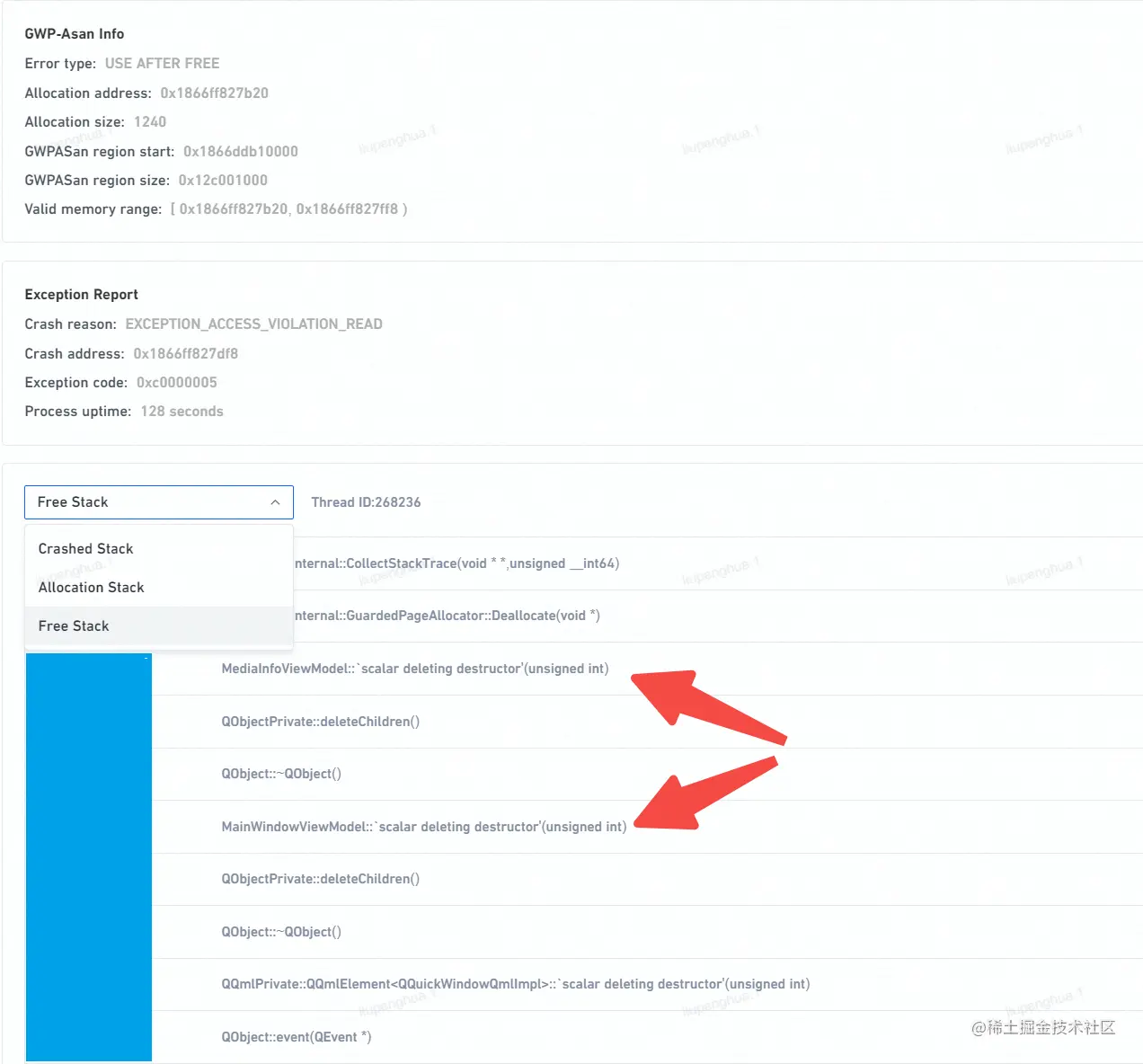 可以看到对于同一个标准库的数据结构,同时有三个线程在访问。此时我们明确的知道,此crash是因为多线程竞争导致的。而且GWP-ASan明确输出了数据结构的释放堆栈,我们不用再去猜测及思考问题是如何导致的。