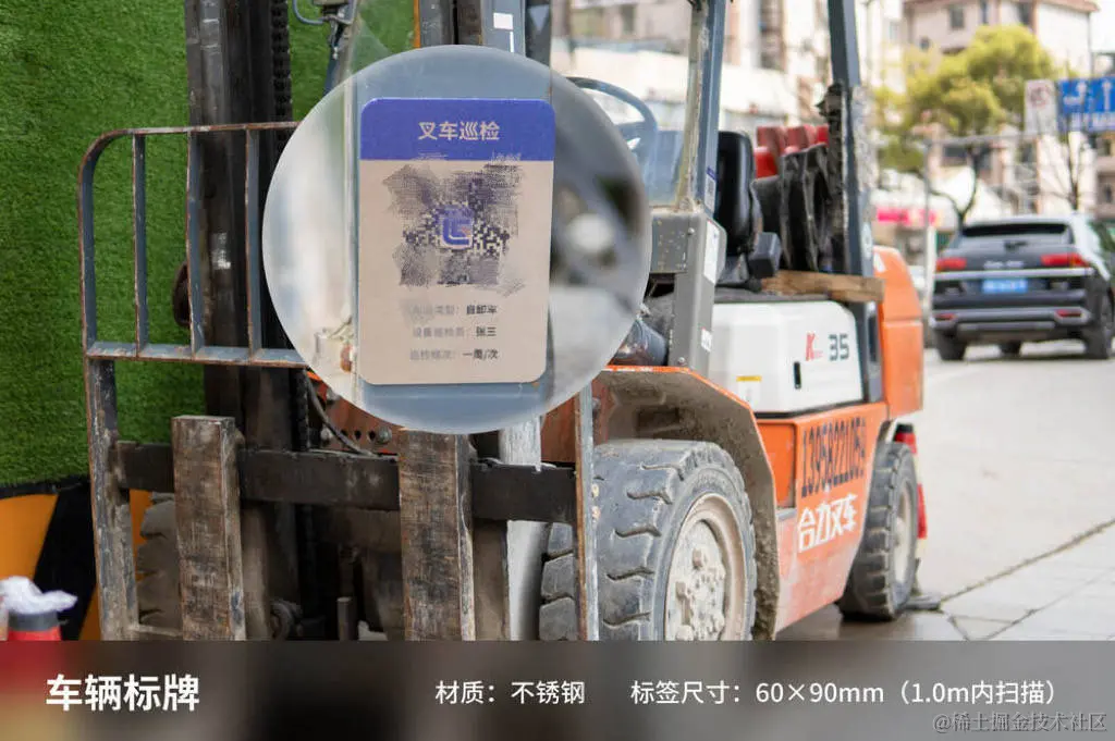 每辆车对应一个二维码,作为车辆的“二维码电子档案”,扫码可以看到车辆的基本信息,车辆相关证书,使用规范,还有车辆检查、保养以及使用记录。