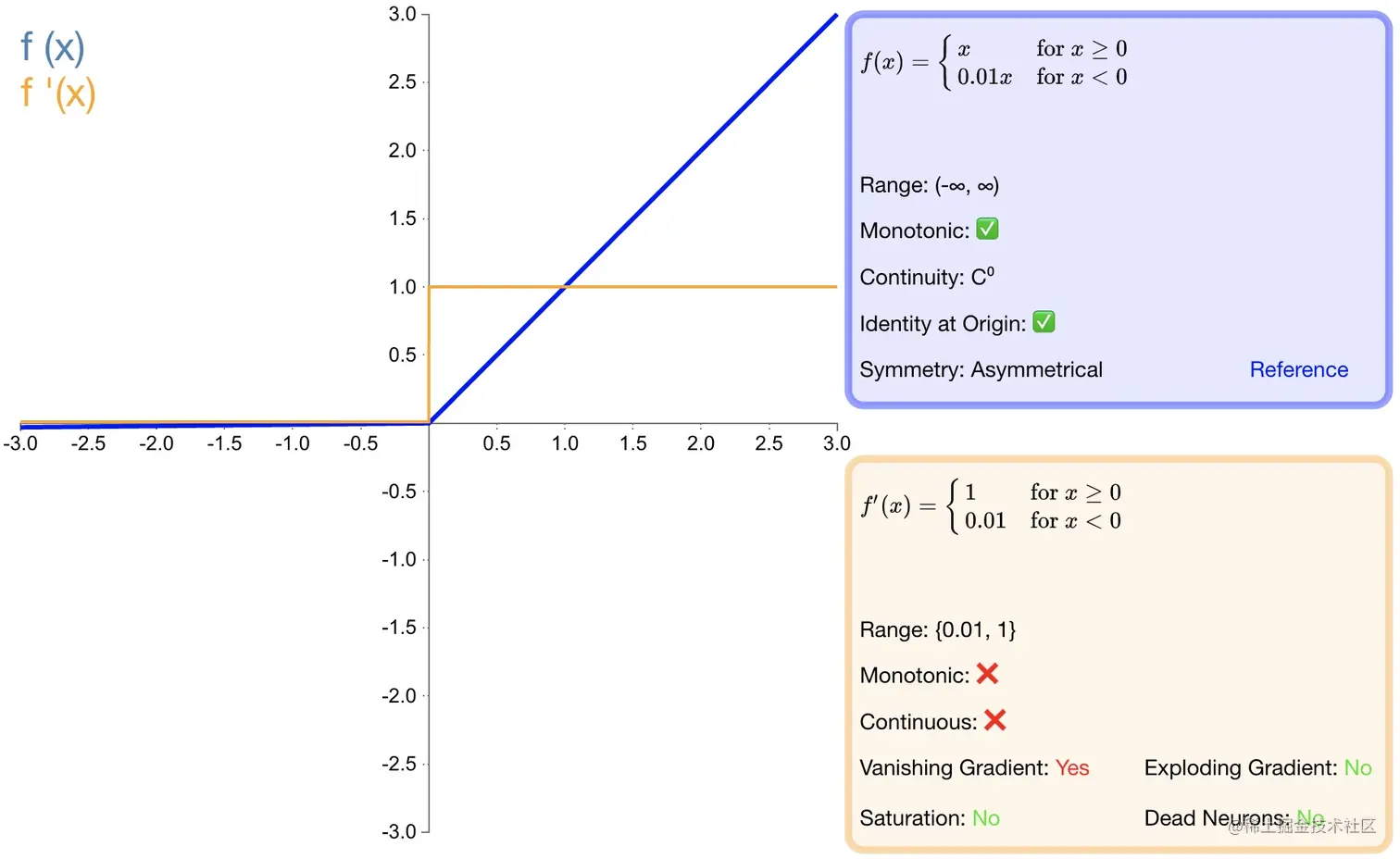 当 x>0时,不存在梯度消失的情况;当 x<0时,神经元也不会像 ReLU 一样出现死亡的情况;