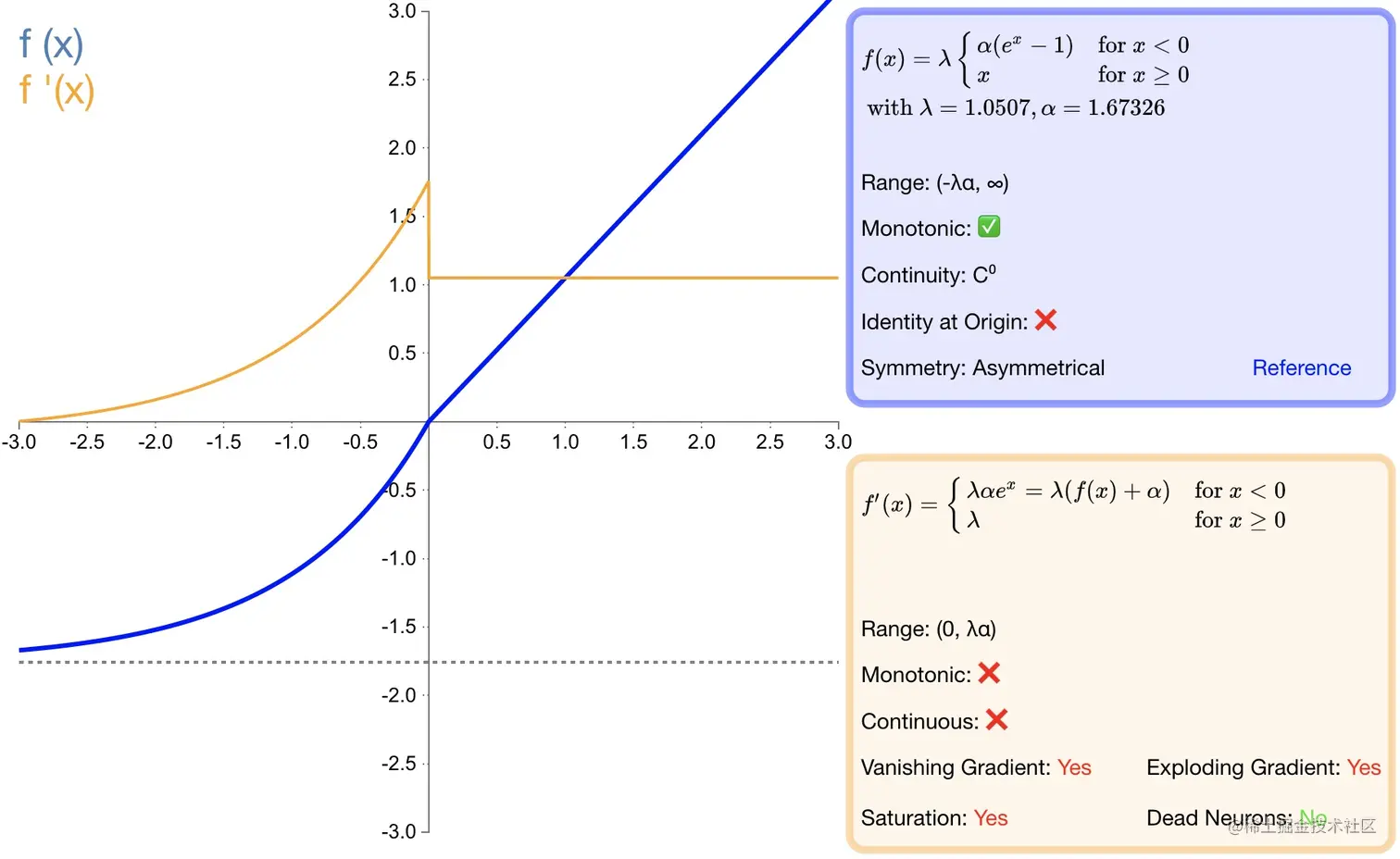 f(\alpha,x)=\lambda\left{\begin{array}{lr}\alpha\left(e^x-1\right)\&x<0\ x\&x\geq0\end{array}\right.