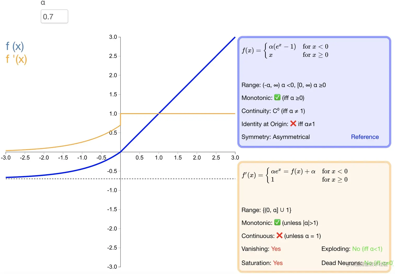f(\alpha,x)=\left{\begin{array}{lr}\alpha\left(e^x-1\right)\&x<0\ x\&x\ge0\end{array}\right.