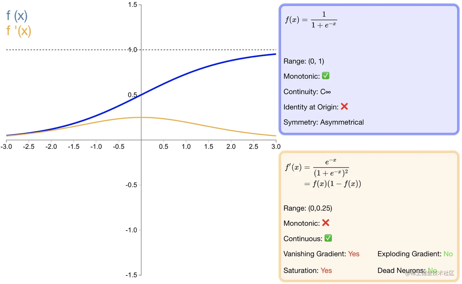 由于其软饱和性,一旦落入饱和区梯度就会接近于0,根据反向传播的链式法则,容易产生梯度消失,导致训练出现问题;