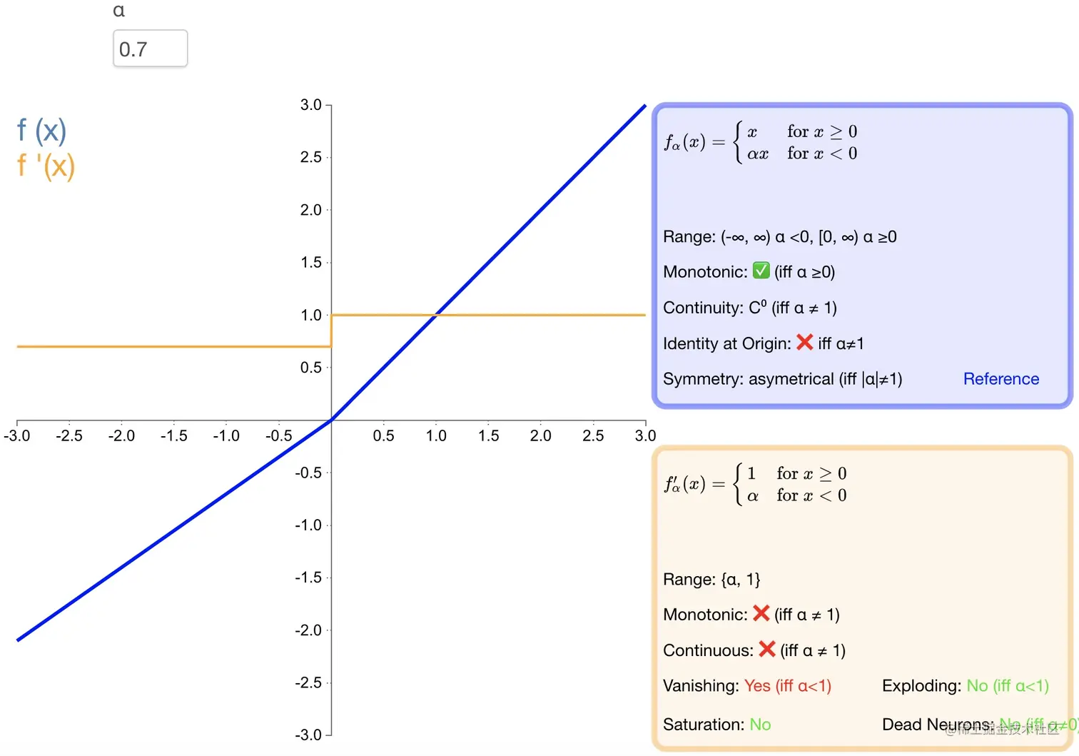 f(\alpha,x)=\left{\begin{array}{lr}\alpha x\&x<0\ x\&x\geq0\end{array}\right.