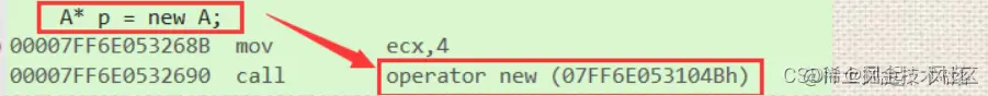 A* p1 = new A;//先创建空间,在调用构造函数,