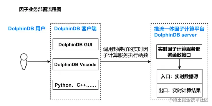 因子业务开发人员无需理解 DolphinDB 流计算框架的底层架构,仅需根据业务因子计算逻辑编写函数表达式,然后调度因子计算平台的计算接口,便可完成因子计算。