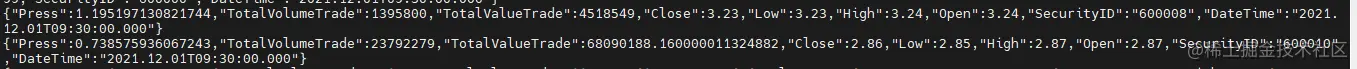 此处 offset 设置为 0,表示从结果表的第一行数据开始订阅,订阅返回结果如下: